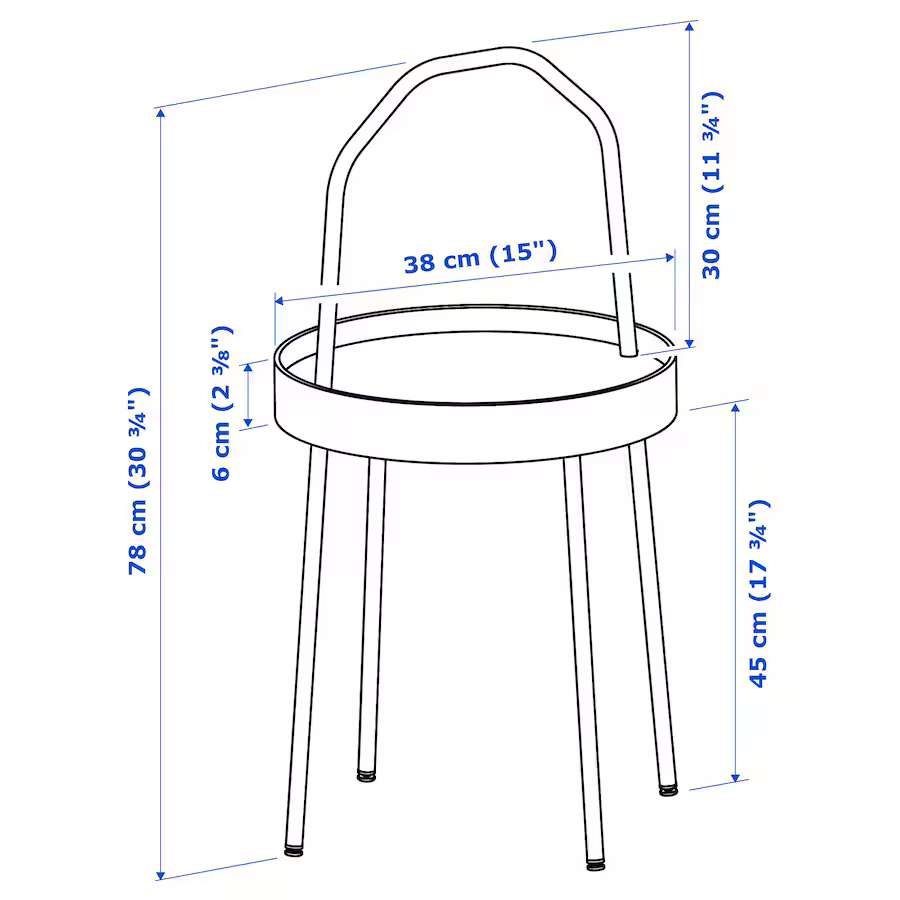 ابعاد: قطر 38 سانتی‌متر × ارتفاع 45 سانتی‌متر